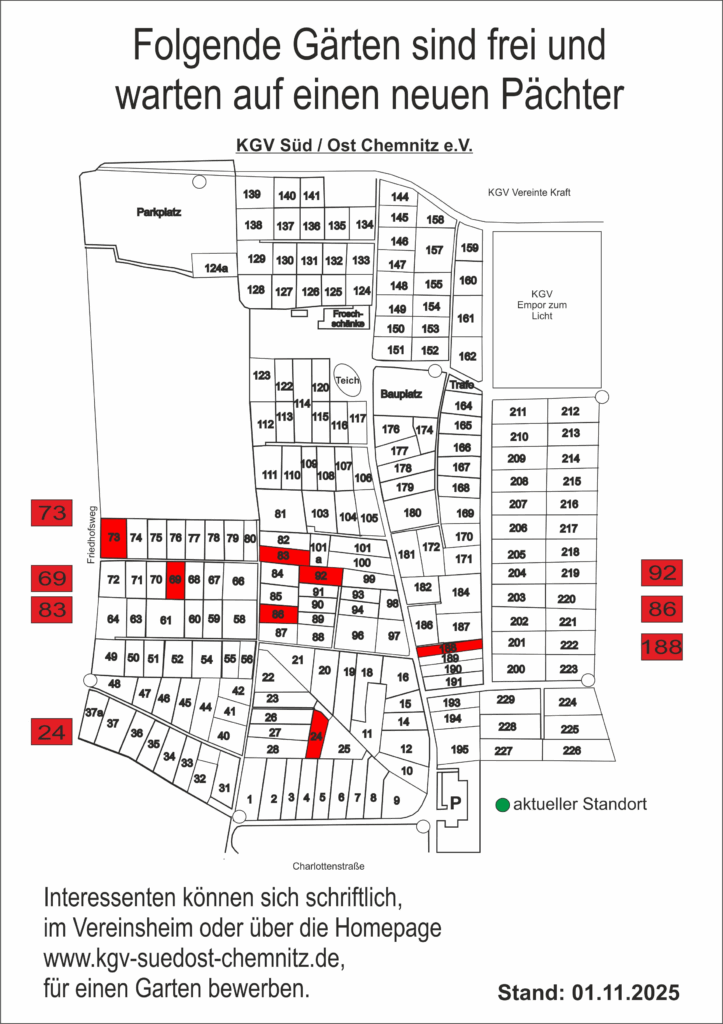 Sollte hier kein freier Garten angezeigt werden, so sind keine Verfügbar.